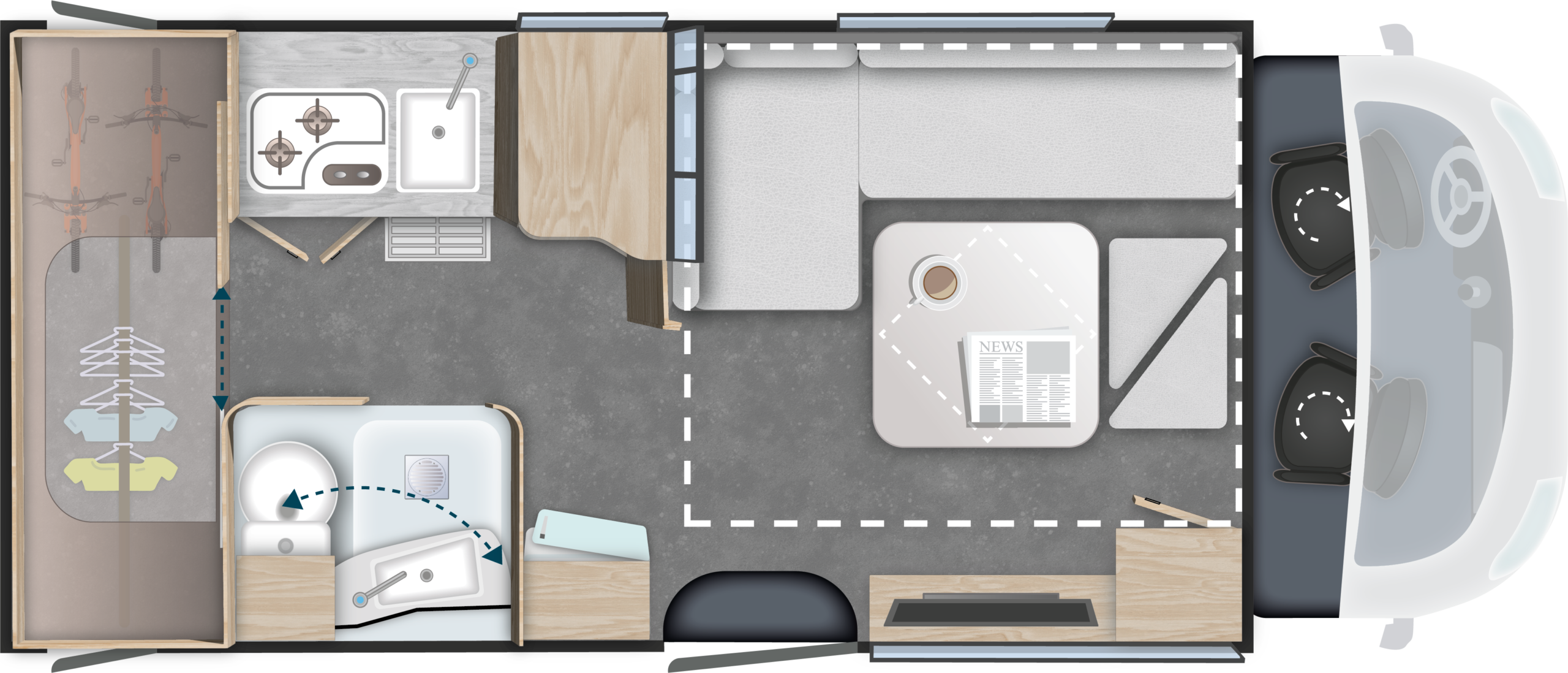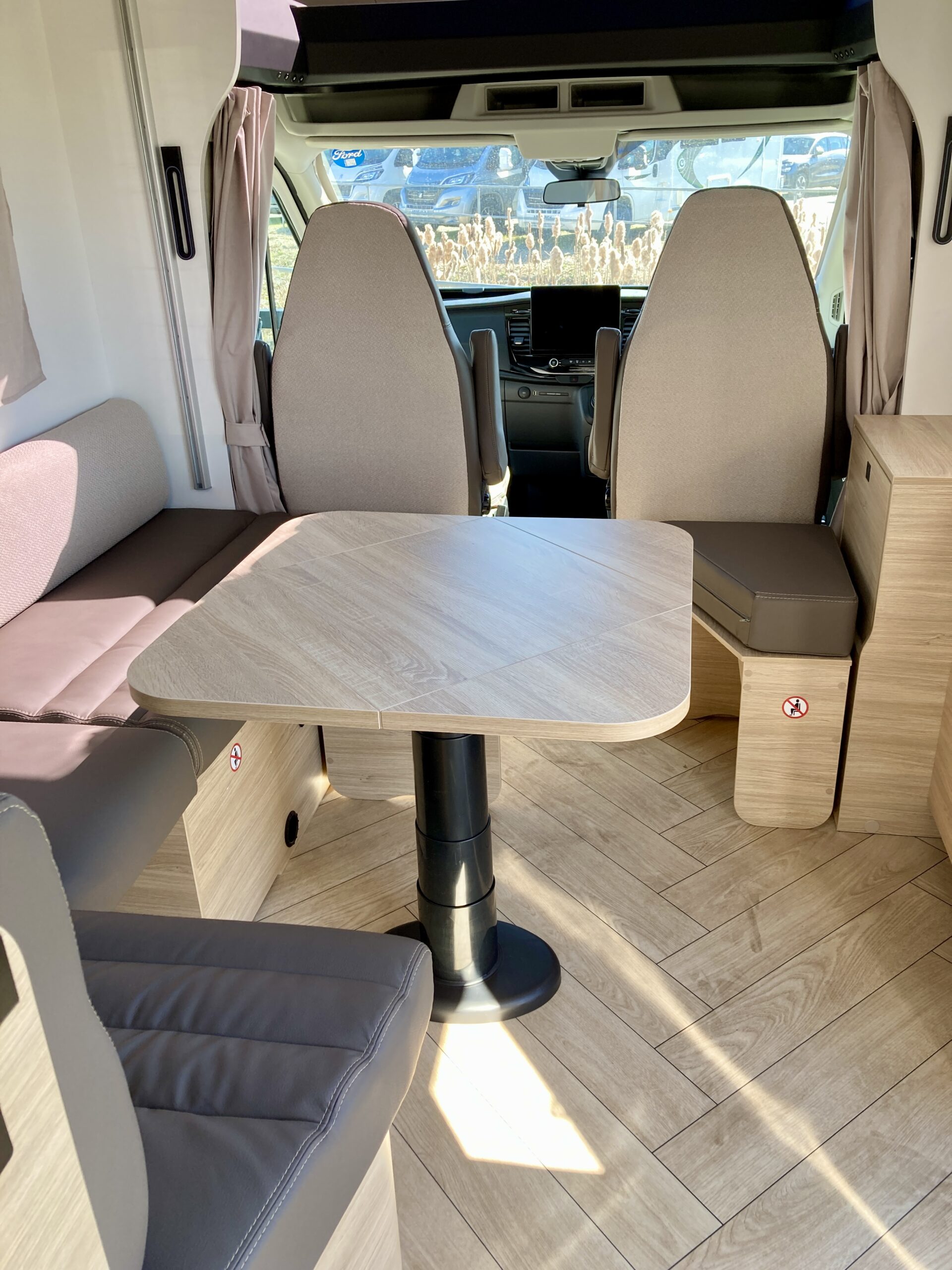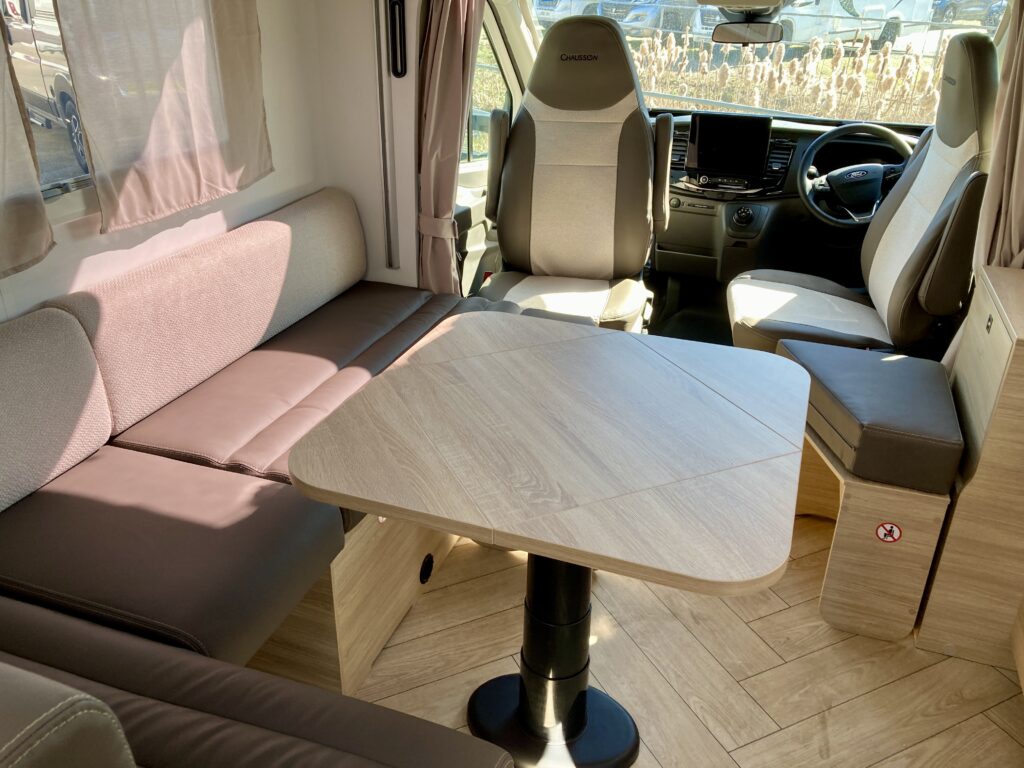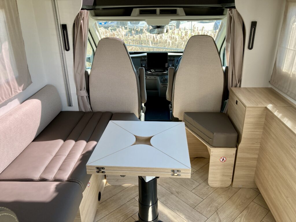 • Swivel seats in the cab, with double armrests and adjustable height