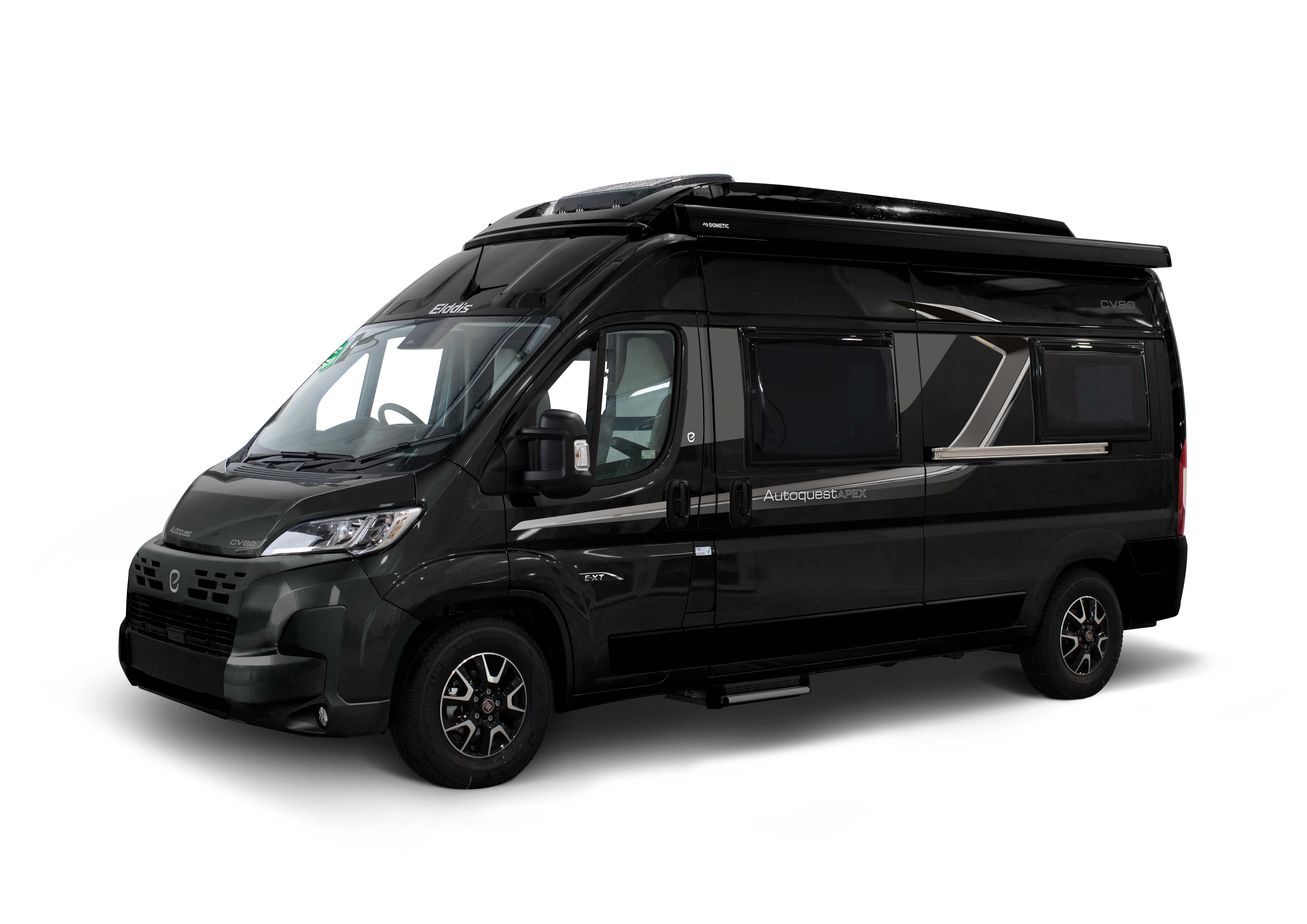 The Autoquest APEX CV range is the fully loaded campervan experience from Elddis— combining high-end spec, distinctive design, and advanced touring features. Built exclusively on the FIAT chassis with 140BHP Automatic transmission, these models come finished in stylish Grey with refined Silver chrome graphics and Apex branding.