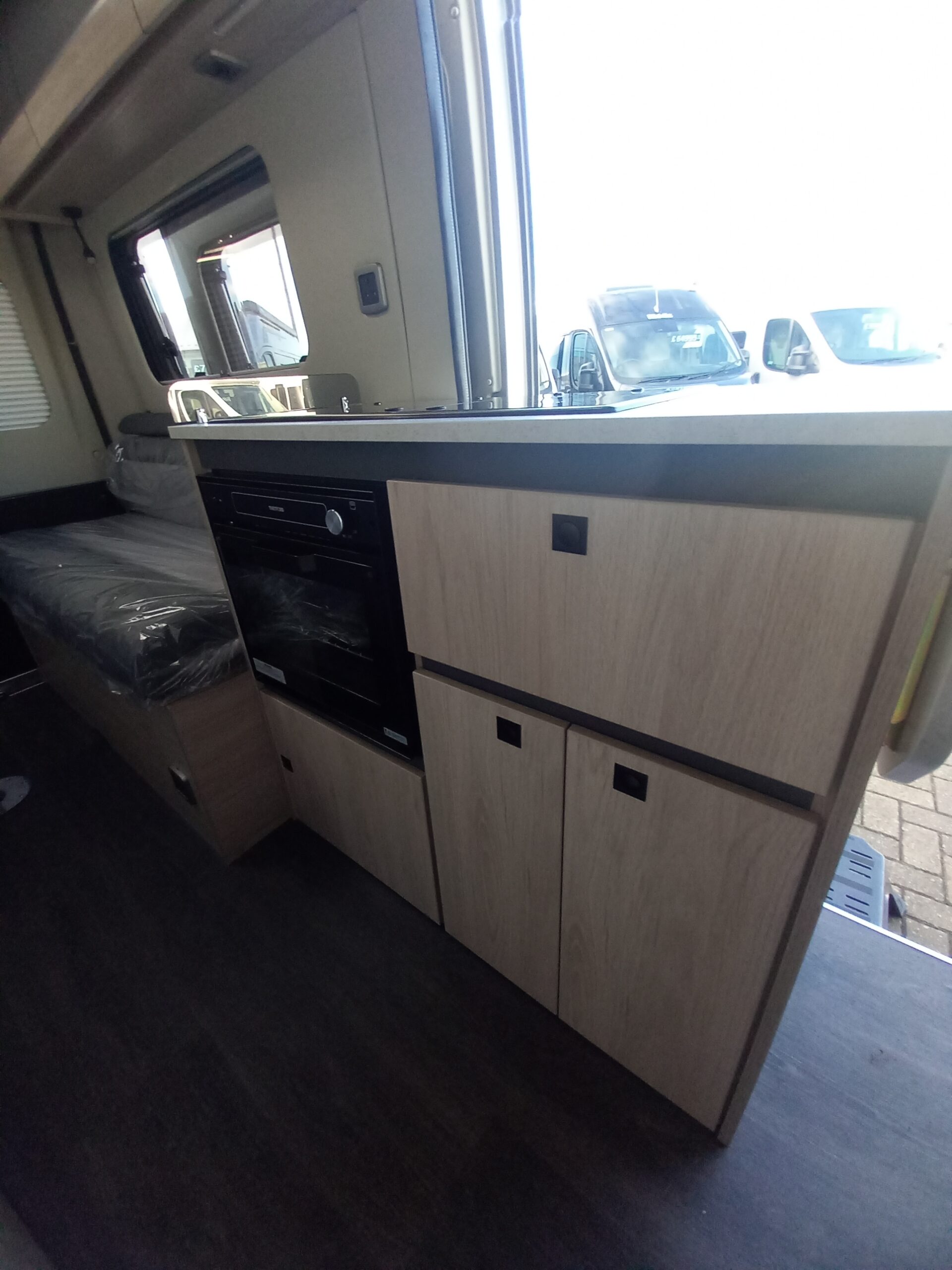 Despite its manageable 5.4m length, the Expedition 54 is cleverly designed to maximise every inch of space. Inside, you’ll find a fully equipped kitchen, complete with Thetford oven, grill, sink, and workspace, allowing you to cook with ease while travelling. The bathroom includes a shower, toilet, and sink, giving you complete independence wherever your journey takes you.